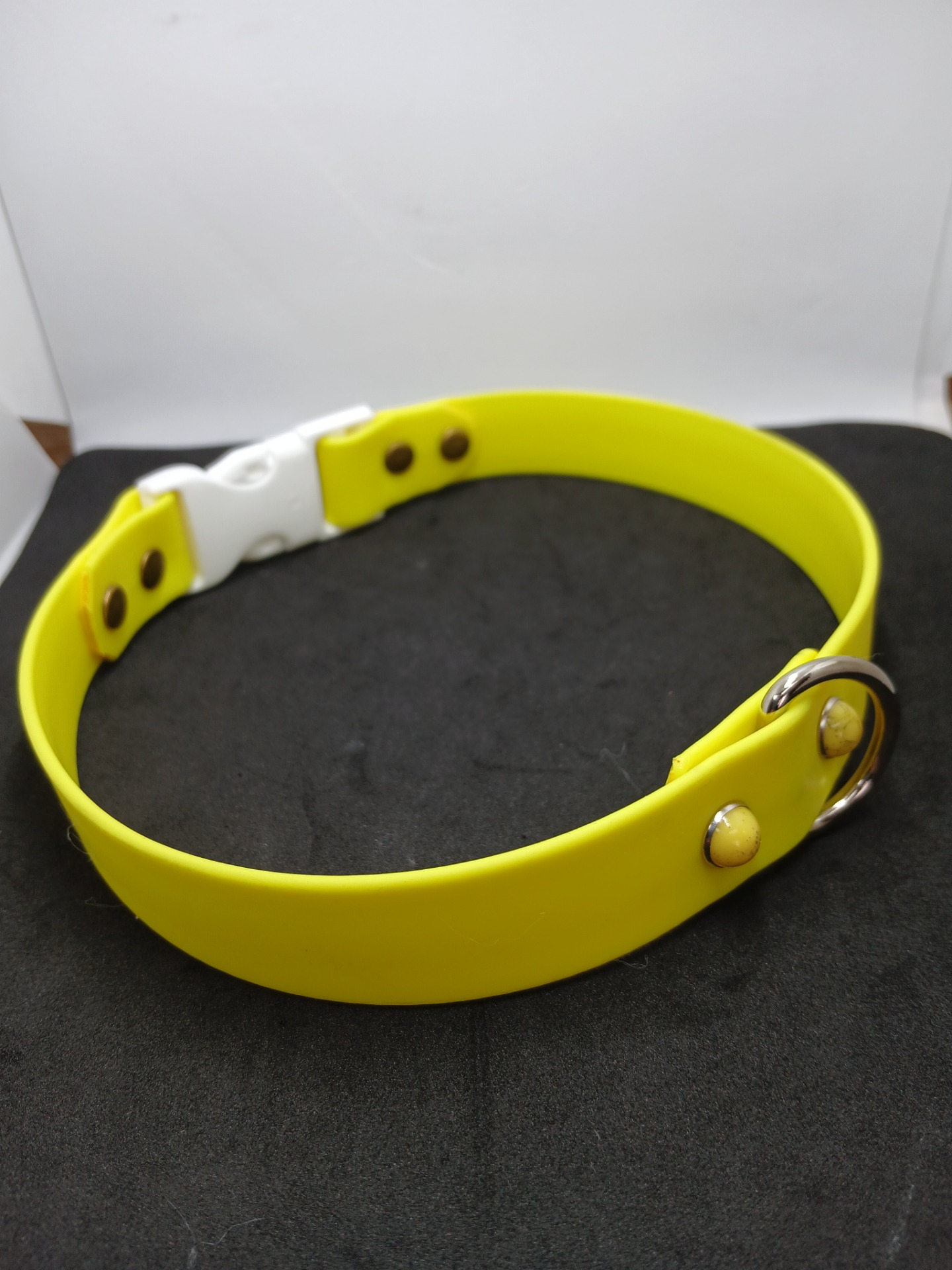 obojek s klasickou plastovou sponou . Obvod obojku 43cm , šířka obojku 20mm. Žlutý.