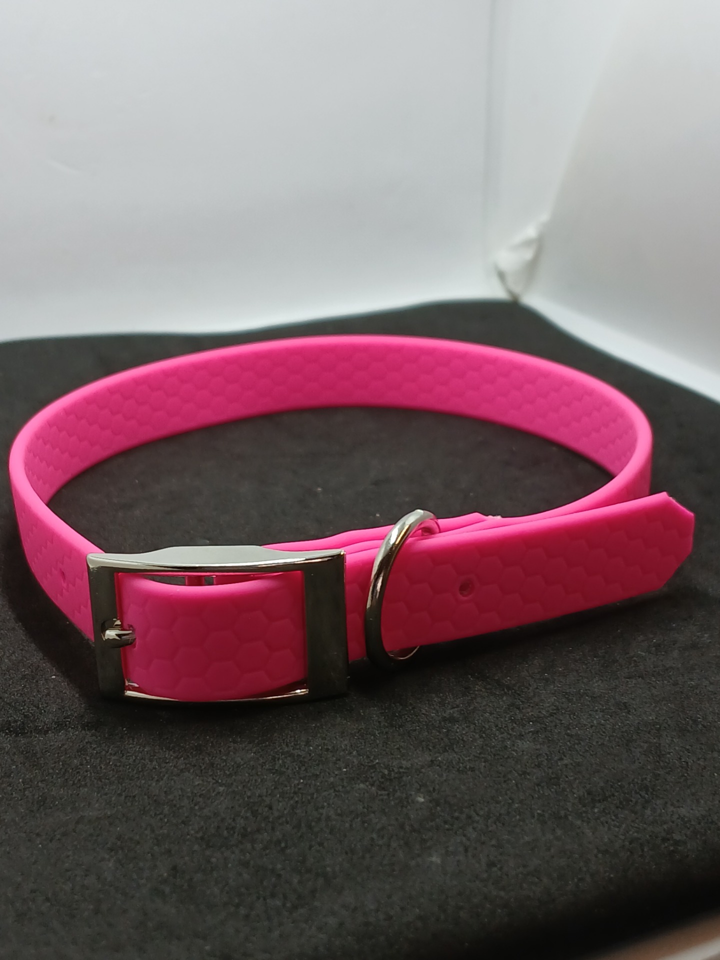 Z voděodolného popruhu Hexa pohodlný obojek s klasickou kovovou sponou . Obvod obojku 33-42 cm ,