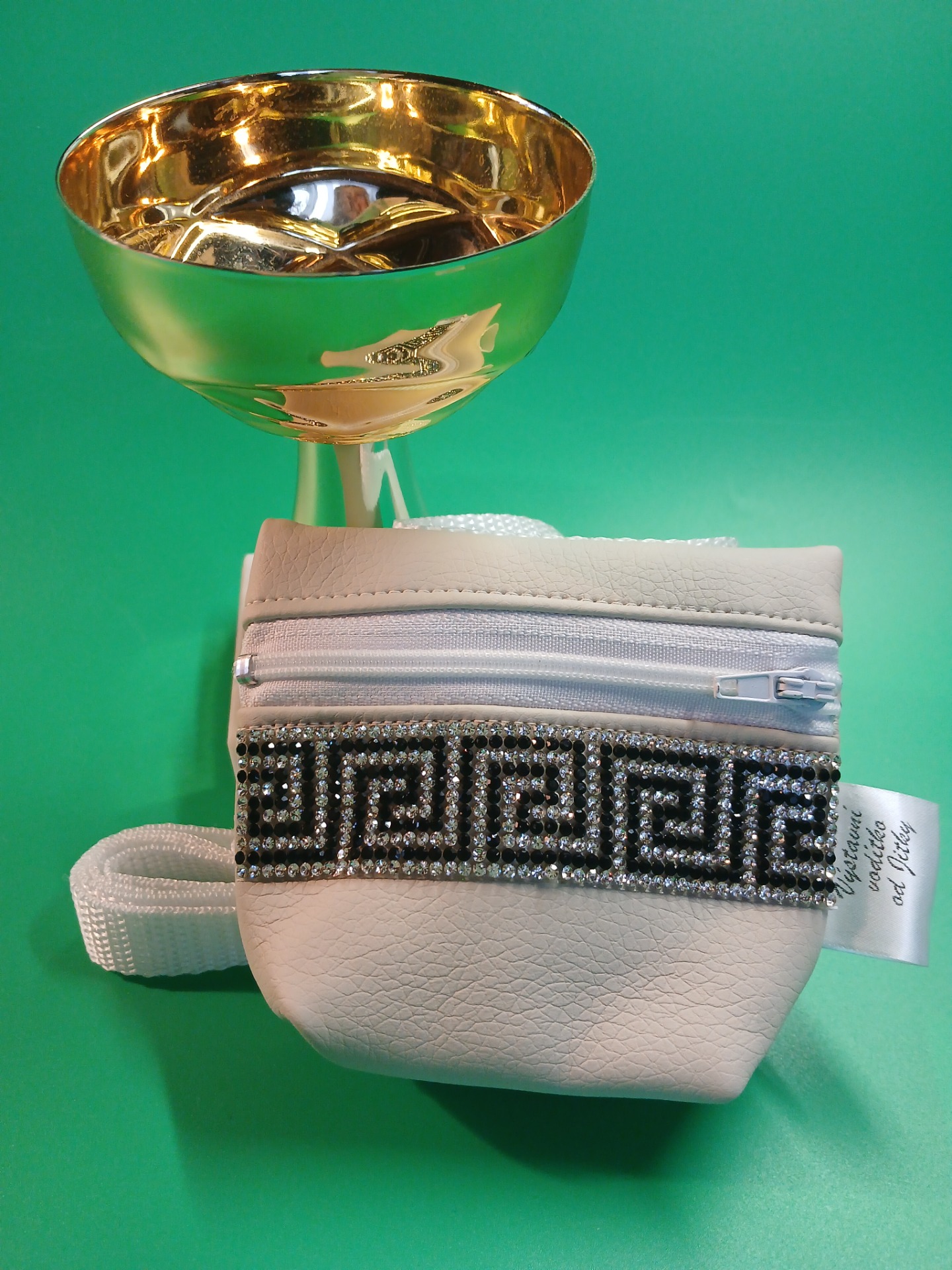 Pamlskovník z eko kůže v krémové barvě . Zavírání na zip zaručí, že vám již žádný pamlsek nevypadne.
