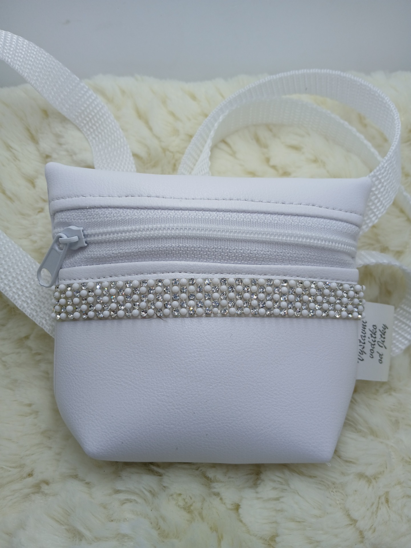 Pamlskovník z eko kůže v bílé barvě . Zavírání na zip zaručí, že vám již žádný pamlsek nevypadne.