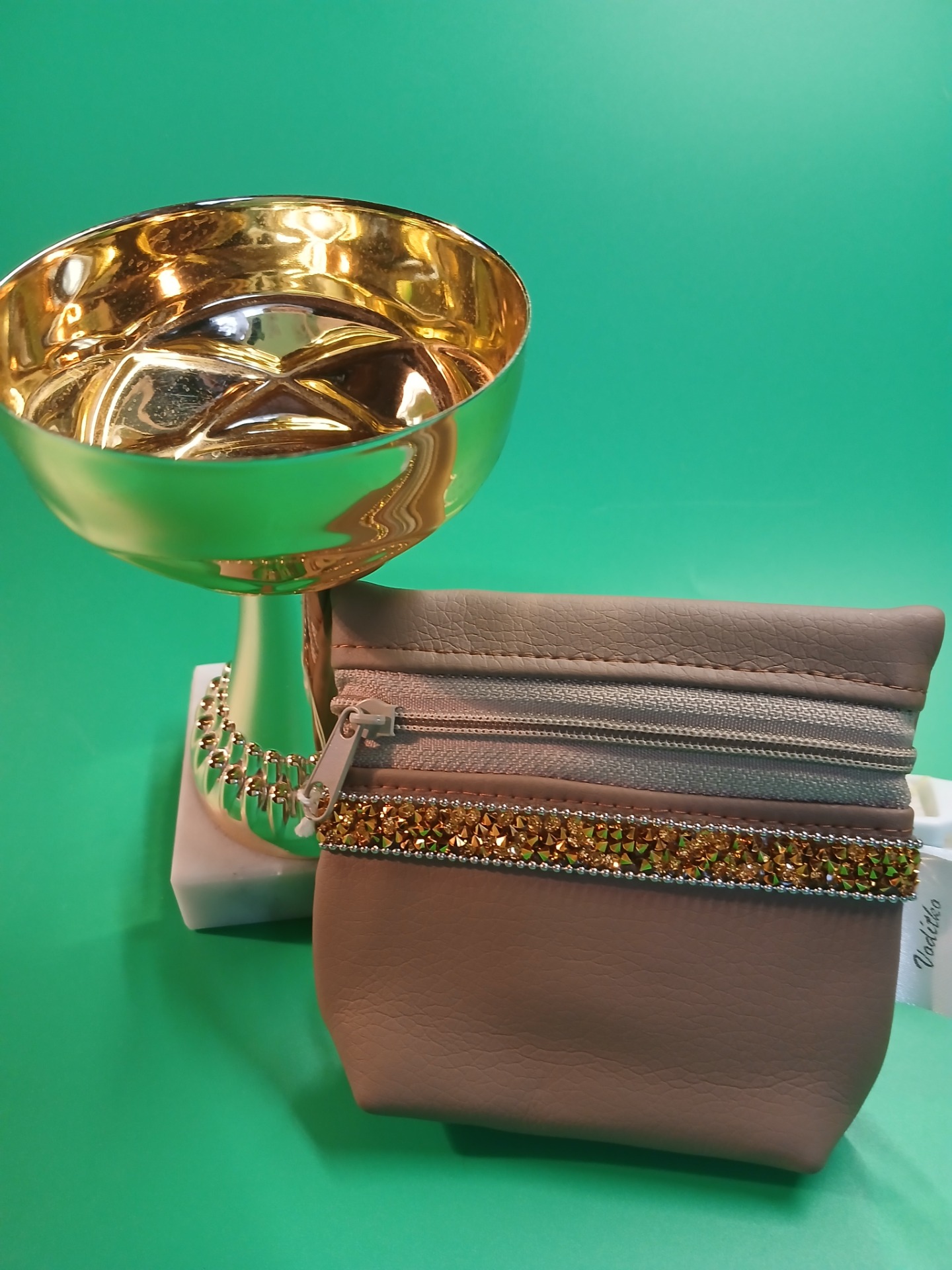 Pamlskovník z eko kůže v hnědé barvě . Zavírání na zip zaručí, že vám již žádný pamlsek nevypadne.
