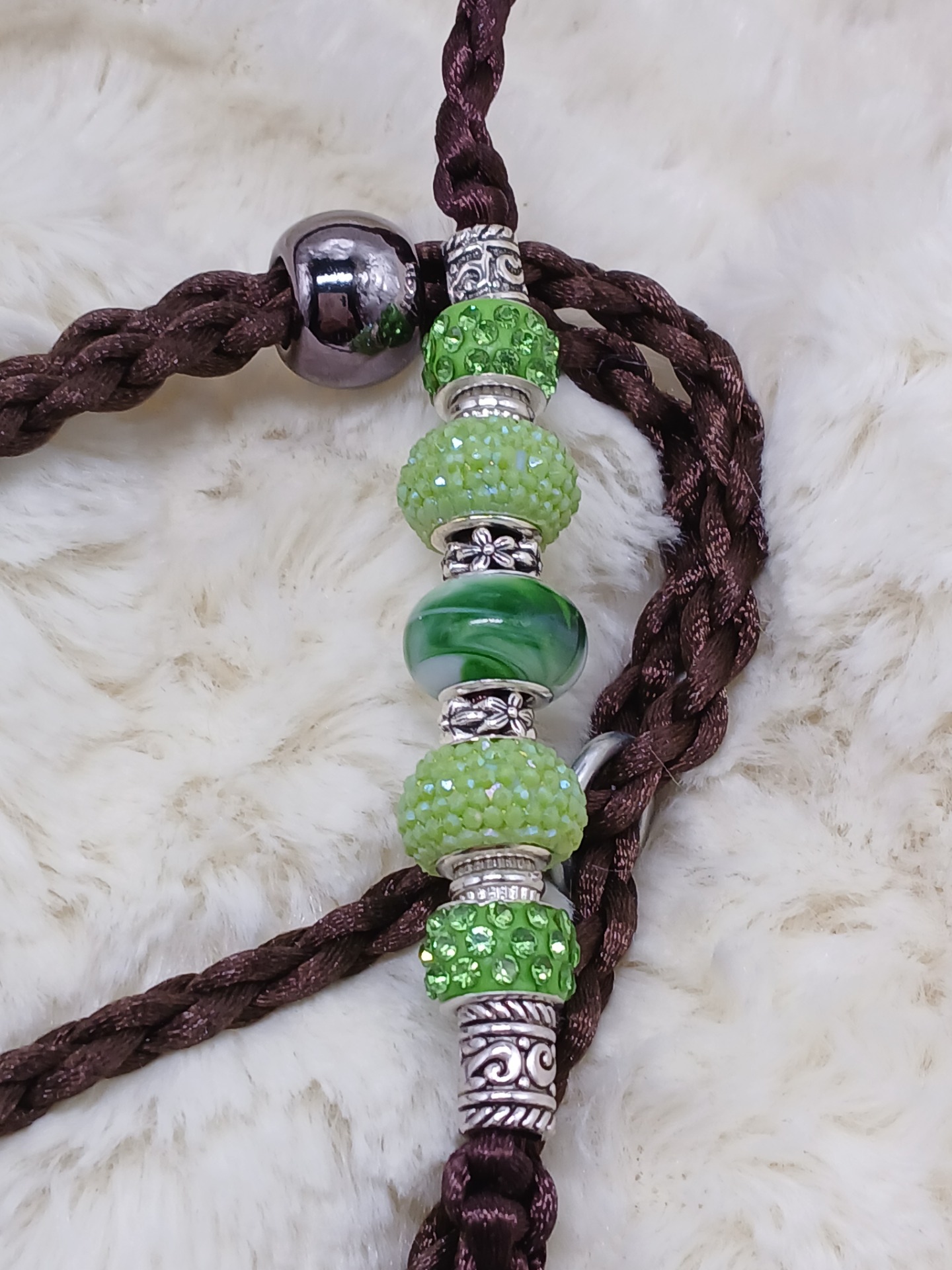 Hnědé výstavní vodítko zakončené na "smyčku", zdobené korálky.