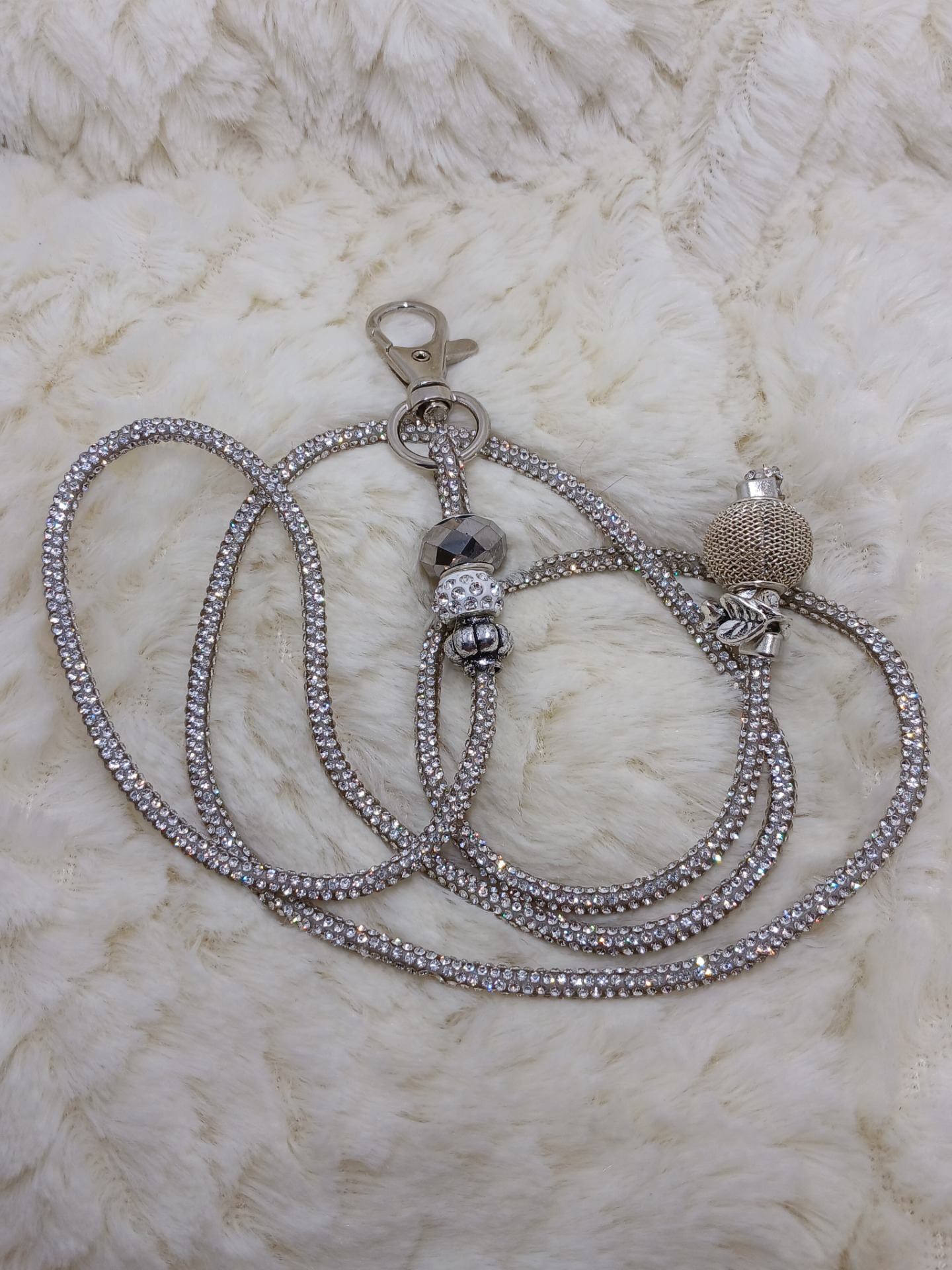 Výstavní kamínkové vodítko v stříbrné barvě zakončené na karabinu . Délka vodítka 90 cm i s karabinou .