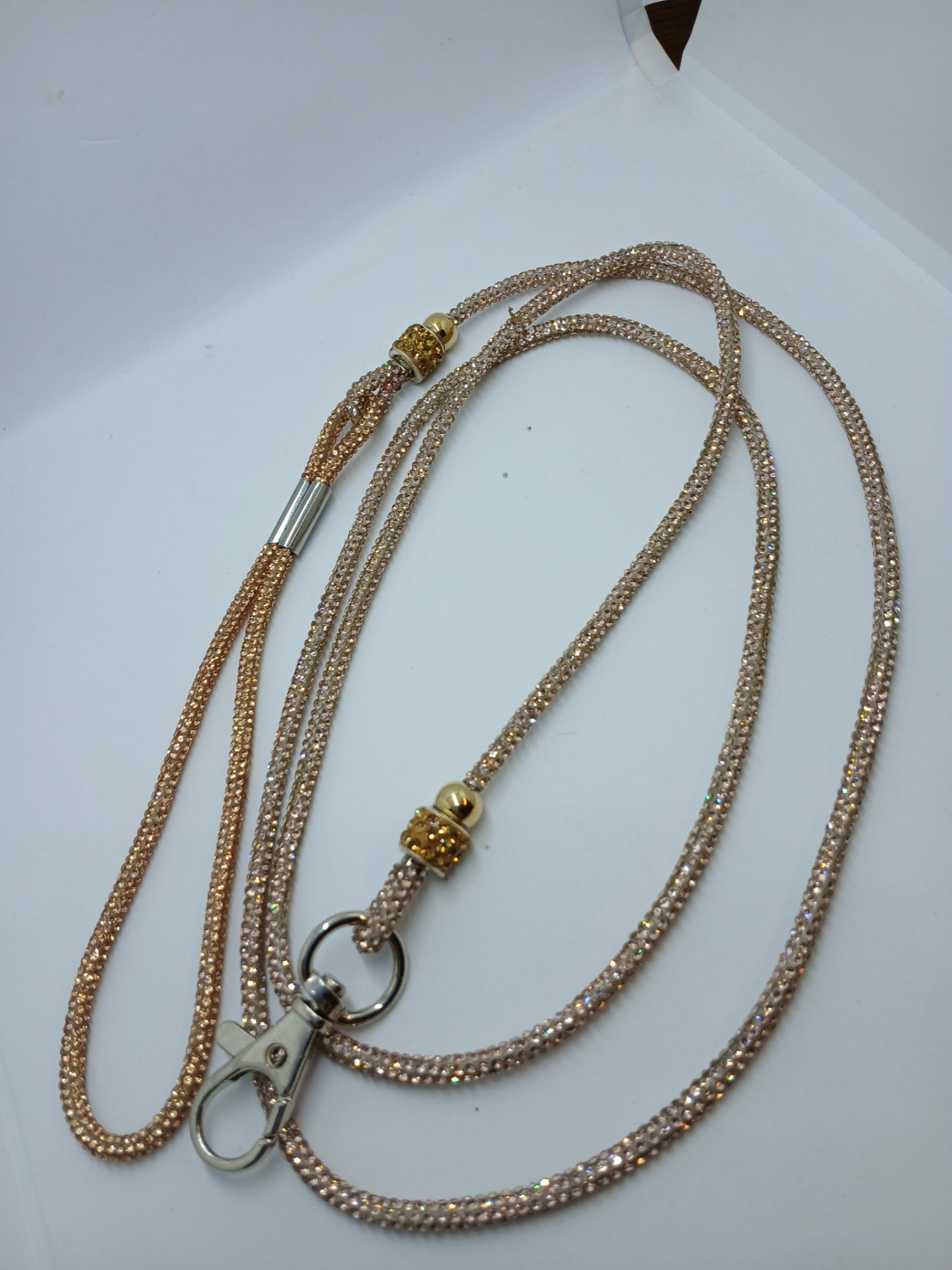 Výstavní kamínkové vodítko v zlaté barvě zakončené na karabinu . Délka vodítka 122 cm i s karabinou .